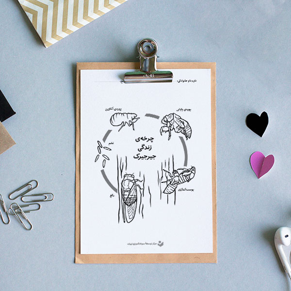 در چرخۀ زندگی کاوش کنید! هر موجود زندهای در طول زندگی خود مراحل مختلف رشد را طی میکند. با این کاربرگ آموزنده به دانشآموزانتان کمک کنید تا نام هر مرحله از چرخۀ زندگی یک جیرجیرک را بیاموزند. فراموش نکنید چند رنگ زیبا نیز برای رنگآمیزی کاربرگ به آنان بدهید.
