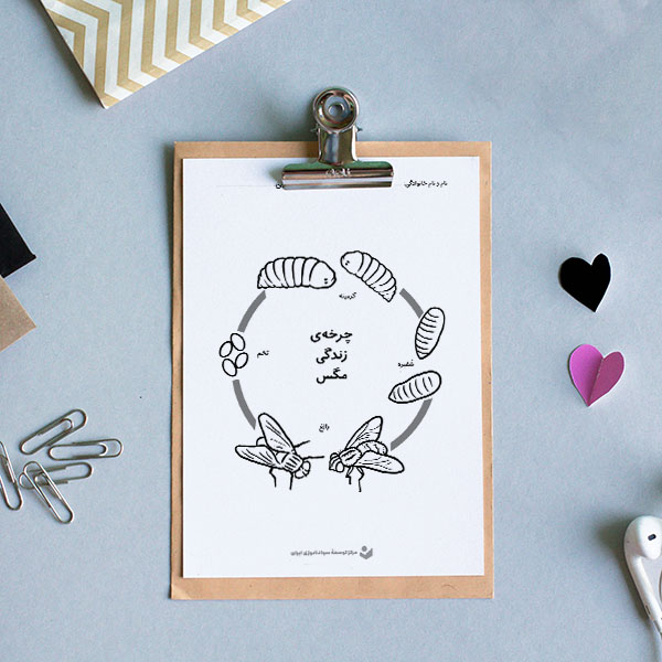 در چرخۀ زندگی کاوش کنید! هر موجود زندهای در طول زندگی خود مراحل مختلف رشد را طی میکند. با این کاربرگ آموزنده به دانشآموزانتان کمک کنید تا نام هر مرحله از چرخۀ زندگی یک مگس را بیاموزند. فراموش نکنید چند رنگ زیبا نیز برای رنگآمیزی کاربرگ به آنان بدهید.