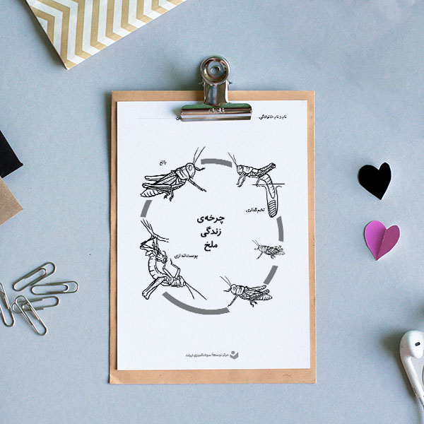 در چرخۀ زندگی کاوش کنید! هر موجود زندهای در طول زندگی خود مراحل مختلف رشد را طی میکند. با این کاربرگ آموزنده به دانشآموزانتان کمک کنید تا نام هر مرحله از چرخۀ زندگی یک ملخ را بیاموزند. فراموش نکنید چند رنگ زیبا نیز برای رنگآمیزی کاربرگ به آنان بدهید.