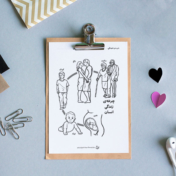 در چرخۀ زندگی کاوش کنید! هر موجود زندهای در طول زندگی خود مراحل مختلف رشد را طی میکند. با این کاربرگ آموزنده به دانشآموزانتان کمک کنید تا نام هر مرحله از چرخۀ زندگی یک انسان را بیاموزند. فراموش نکنید چند رنگ زیبا نیز برای رنگآمیزی کاربرگ به آنان بدهید.