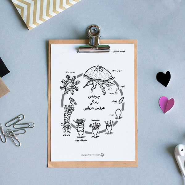 در چرخۀ زندگی کاوش کنید! هر موجود زندهای در طول زندگی خود مراحل مختلف رشد را طی میکند. با این کاربرگ آموزنده به دانشآموزانتان کمک کنید تا نام هر مرحله از چرخۀ زندگی یک عروس دریایی را بیاموزند. فراموش نکنید چند رنگ زیبا نیز برای رنگآمیزی کاربرگ به آنان بدهید.