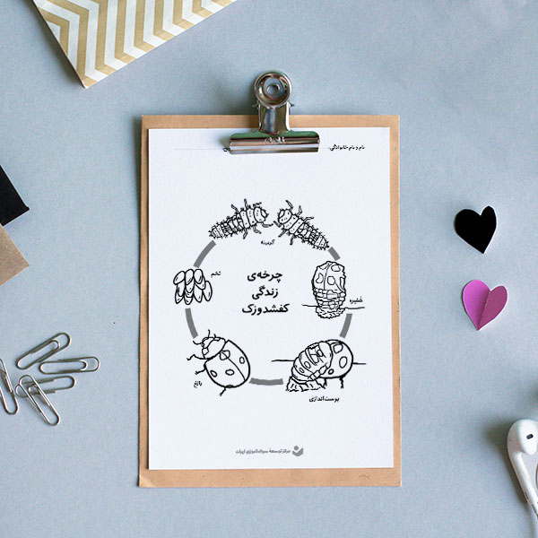 در چرخۀ زندگی کاوش کنید! هر موجود زندهای در طول زندگی خود مراحل مختلف رشد را طی میکند. با این کاربرگ آموزنده به دانشآموزانتان کمک کنید تا نام هر مرحله از چرخۀ زندگی یک کفشدوزک را بیاموزند. فراموش نکنید چند رنگ زیبا نیز برای رنگآمیزی کاربرگ به آنان بدهید.