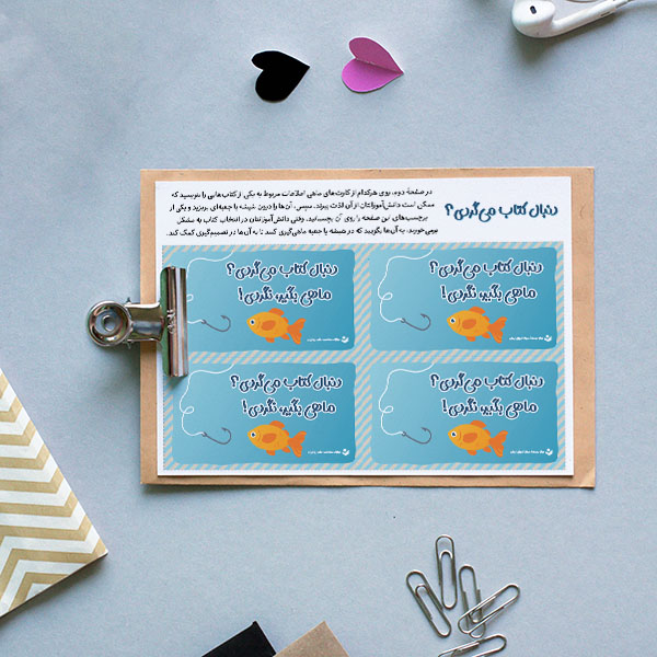 وقتی از آنها میشنوید که «من نمیتوانم کتابی پیدا کنم»، «نمیدانم چه بخوانم»، «هیچچیز بهنظرم خوب نمیآید» و...، با این کارتها میتوانید به آنها برای مطالعه انگیزه ببخشید. از این ابزار سریع و آسان استفاده کنید تا انتخاب کتاب کمی برایشان آسانتر شود. برچسبی روی شیشه یا جعبهای کوچک بچسبانید (اگر از تنگ ماهی استفاده کنید، امتیاز بیشتری دارد!) و قالبهای ماهی را با برخی از کتابهای موردعلاقۀ خود برای کودکان پر کنید. روی هر ماهی، عنوان یک کتاب، نویسنده و ژانر آن نوشته میشود. وقتی دانشآموزان با یکی از آن جملات ترسناکی که گفتیم به شما مراجعه میکنند، کافی است به آنها بگویید به ماهیگیری بروند!