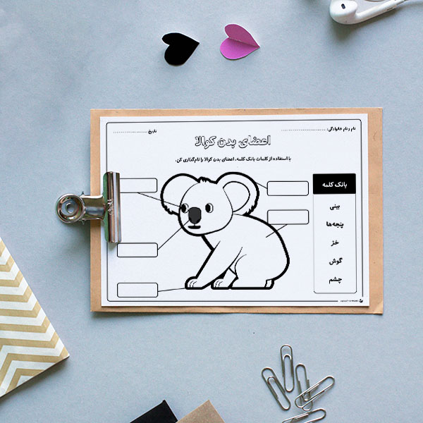 با این کاربرگ، خردسالان میتوانند اعضای بدن کوالا را بررسی و شناسایی کنند. دانشآموزان باید تلاش کنند کلمات موجود در بانک کلمه را بخوانند و آنها را در جای درست قرار دهند. دنیای حیوانات برای کودکان شگفتانگیز است و تخیل آنان را برمیانگیزد. شما را تشویق میکنیم تا به کمک این مجموعه از کاربرگها، عشق به حیوانات را با آموزش علوم و سوادآموزی تلفیق کنید.