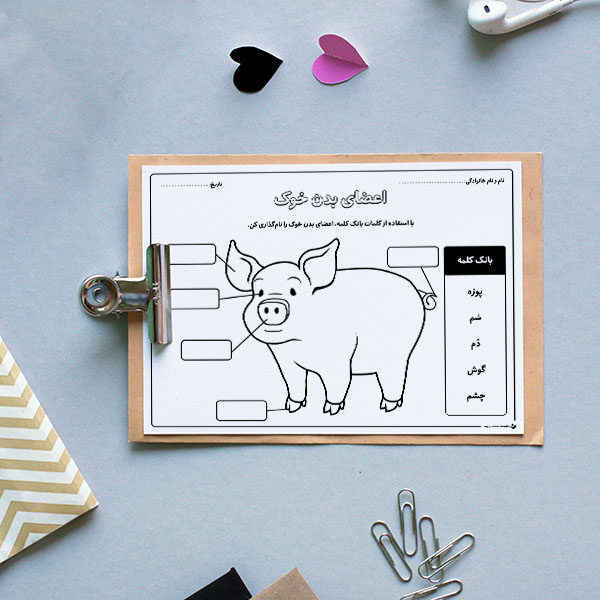 با این کاربرگ، خردسالان میتوانند اعضای بدن خوک را بررسی و شناسایی کنند. دانشآموزان باید تلاش کنند کلمات موجود در بانک کلمه را بخوانند و آنها را در جای درست قرار دهند. دنیای حیوانات برای کودکان شگفتانگیز است و تخیل آنان را برمیانگیزد. شما را تشویق میکنیم تا به کمک این مجموعه از کاربرگها، عشق به حیوانات را با آموزش علوم و سوادآموزی تلفیق کنید.